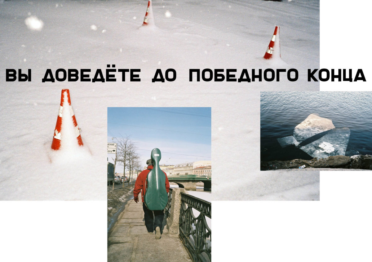 Russia-born artists Alexander Bondar and Tatyana Palyga used this time capsule letter as the basis for their photobook, which was published as the third instalment in their ongoing series Zoopark Magazine, each issue of which explores a different city or geographical area. The photobook explores the contradictions between the then and the now, as the glorious vision for the future described in the evocative text is read alongside the sometimes-bleak reality of contemporary life. Shot in St Petersburg in winter, the high-contrast, often full-bleed images depict an ice-covered urban landscape. Everyday scenes of a children’s playground, a fast food van, and rows upon rows of concrete housing are punctuated by oddities such as a man and child riding Segways through the snow and markets selling cheap wears, such as blankets featuring the portrait of a young Vladimir Putin.