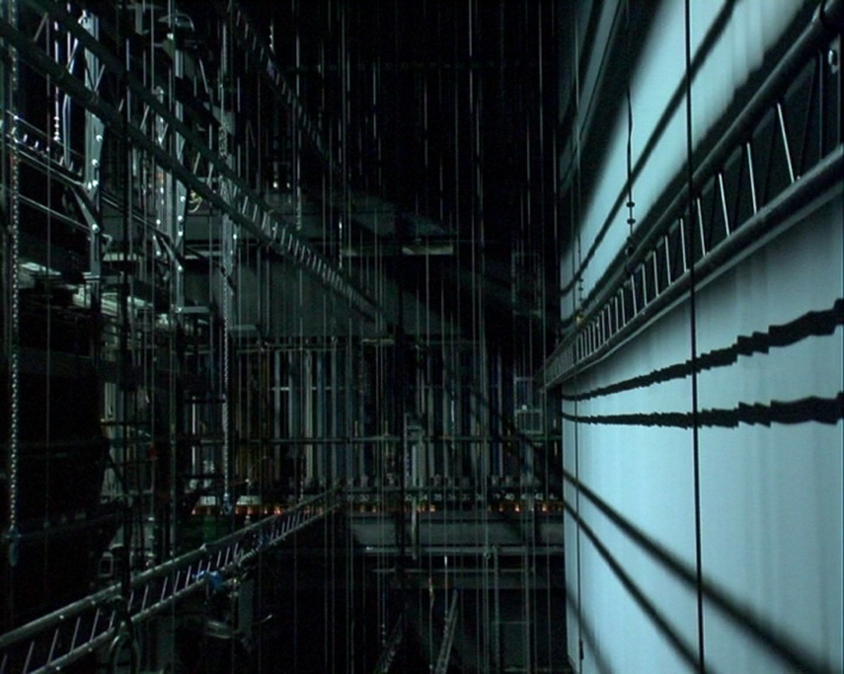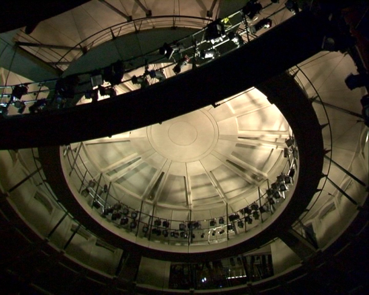 The film uncompromisingly strips back the operatic space to its architectural and theatrical core. It reveals another more minimal drama of spatial plays and simple, slow movement that transforms the interior of the building in a monumental caress of light and shadow.