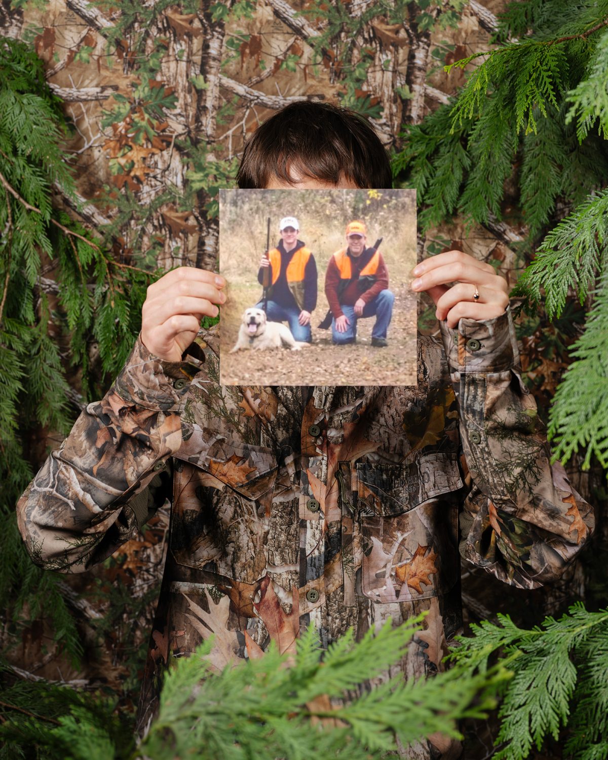 In Camouflaged, Briar Pine explores their patriarchal lineage to examine how masculinities are formed and performed. The project draws parallels between the history of photography and the masculine culture Pine was raised within, both of which carry traditions rooted in control, dominance and extraction. Through this lens, the series asks how transmasculine identities navigate the pressure to either assimilate into dominant cultural structures or resist them entirely.