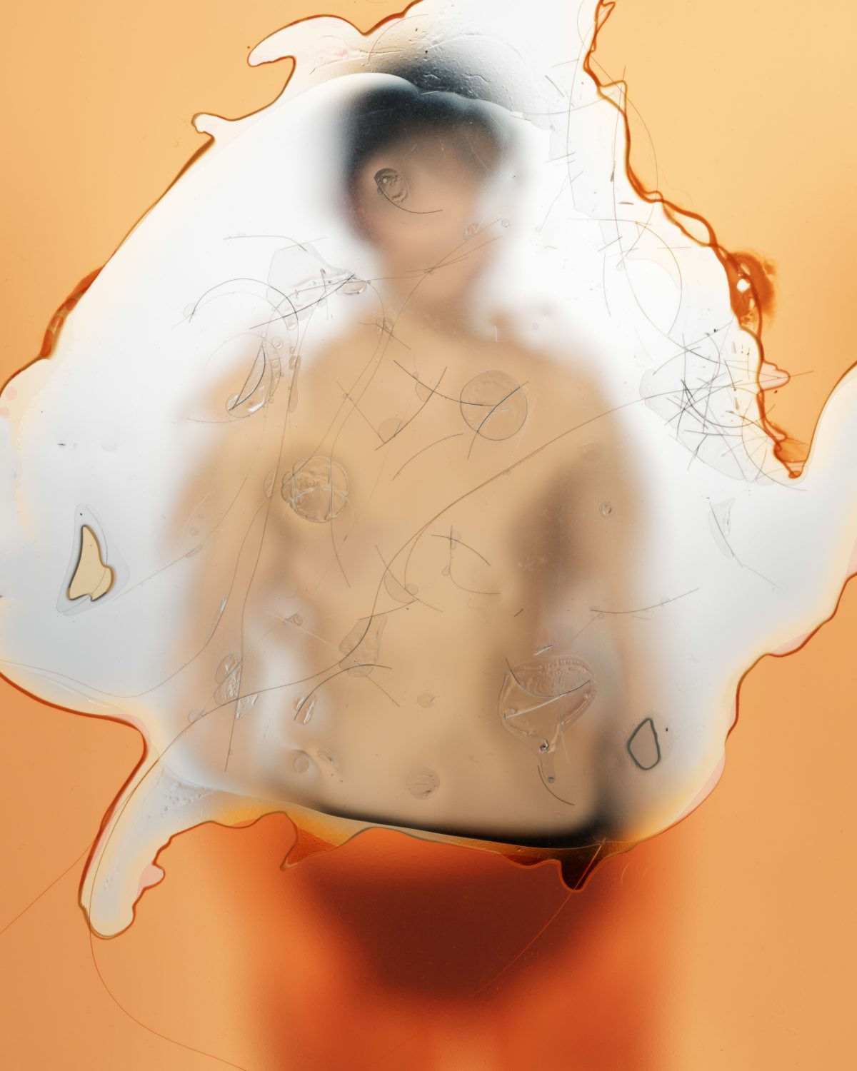 Using materials linked to conventional masculinity, such as camouflage, blaze orange and military patterning, Pine stages portraits that question visibility and identity. In several images, they apply self-camouflage techniques borrowed from military and hunting practices, as well as from natural systems, to explore what it means to be seen as a trans person in the United States. Camouflage is traditionally used to disappear into an environment. Pine, however, also employs it to become hypervisible, confronting the viewer with the expectations and limitations placed on gender presentation.