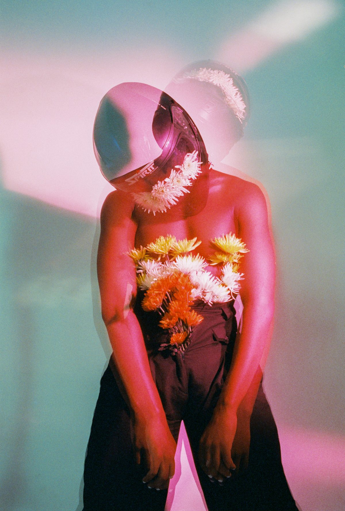 Flower Child x Maroga Collab is a series of images made with South African artist, poet, performer, and embodied practitioner Kopano Maroga for their debut poetry collection “Jesus Thesis and other Critical Fabulations.” Exhibited at the Goethe Institute in Johannesburg & UCT Hiddingh ‘It’s Rude to Stare’ (Group Shows). A surreal exploration of gender, queerness, and faith.
