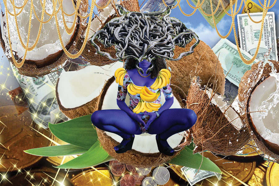 Business As Usual borrows its name from the term used in the corporate world to refer to an unchanging state of affairs despite difficulties or disturbances. Alberta Whittle uses humour and sarcasm to create ambivalent layers of meaning, addressing themes including disempowered histories, climate colonialism, trauma, healing and discomfort with how privilege is performed and engaged with.