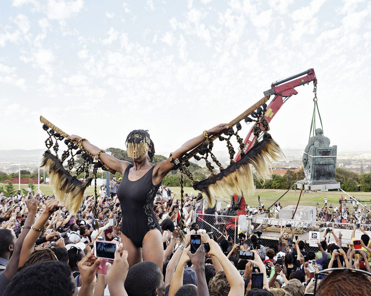 Sethembile Msezane’s work is concerned with the politics of public commemoration, history making, spirituality and African epistemologies. Her multidisciplinary practice aims to unearth the stories of individuals who have been rendered invisible, and advocates ancestral spirituality as a form of healing.