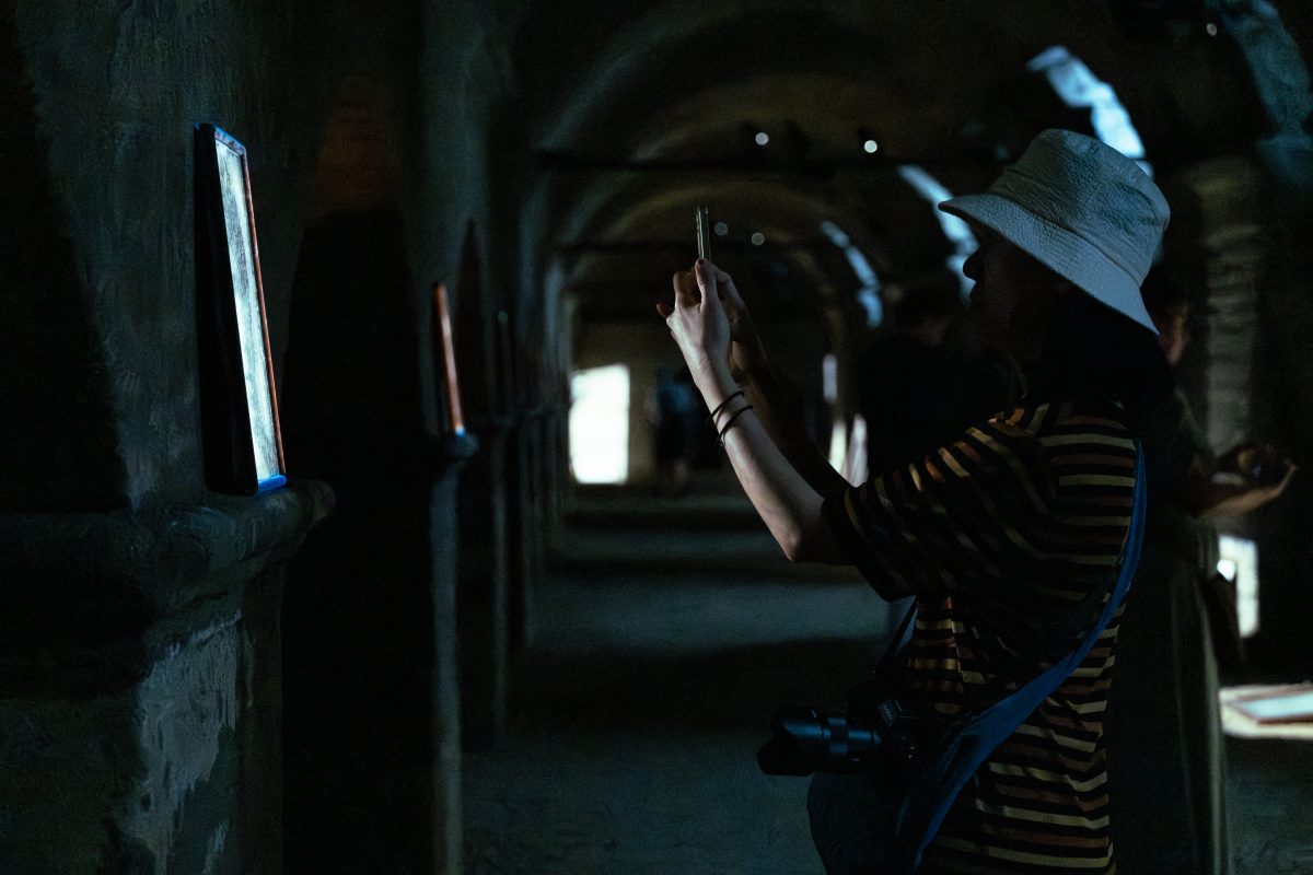 On a boiling hot day in the South of France during Rencontres d’Arles 2023, I descended the stairs into the cryptoporticus, the underground Roman vaults dating back to 1st Century BCE. While being a momentary respite from the sunshine, it was also the location of Sophie Calle’s exhibition ‘Neither Give Nor Throw Away’, an array of photographs alongside an installation of clothes and objects that unfolded throughout the damp and dark tunnels of the crypts. That same year, while preparing for her retrospective at the Picasso Museum in Paris, an unexpected storm damaged Calle’s storage place, causing tiny mould spores to infiltrate her photographs – spreading across the images as if infecting them. As the mould spores would not only damage the works in storage – they would also infect any new photographs that came into contact with them – the conservation team advised that Calle destroy the works to limit further destruction. Rather than dispose of them immediately, Calle came up with a new idea to display them a final time in the damp and dark crypts during Rencontres d’Arles, finding beauty and new life in the process of their decay.