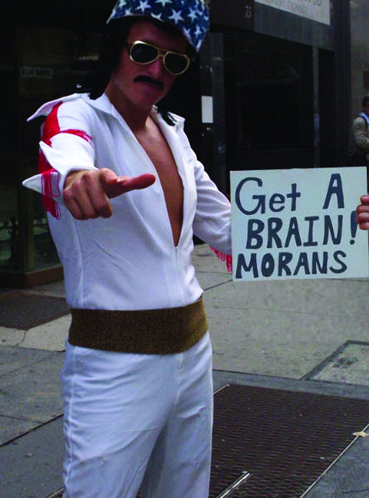 The man in the photo carries two inelegantly hand-lettered signs, one of which says in large letters “Get A BRAIN! MORANS,” and the other, “GO USA.” The latter, often shouted by sports fans at international competitions such as the Olympics, is hauled out to jingoistic effect on political occasions. But it is the large sign that has made the photo an enduring icon, because of its presumed misspelling of the word ‘morons.’ It hardly needs explaining why misspelling a word on a large sign denigrating your opponents’ intellectual capabilities would make you an object of ridicule. In this instance, the emphatic slogan above, ‘get a brain!’ compounds the gaffe.