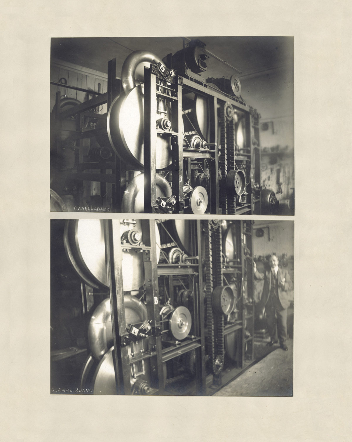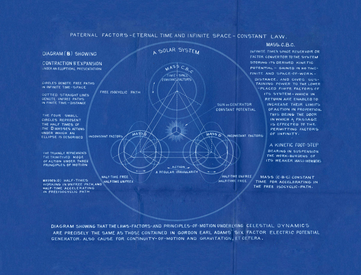 Gordon Earl Adams was an engineer, scientist and seeker of spiritual truth. At some point in the late 1920s in the basement of his house in Shepherd’s Bush he constructed an extraordinary device, designed to over-reach the boundaries of time and space. This is not a fictional tale: it is proven to be a truth by the many albums of research notes, designs for his machine, calculations and photographs of the device he built. These records survive and were acquired by the Archive of Modern Conflict (a private photographic collection) via auction in 2010.