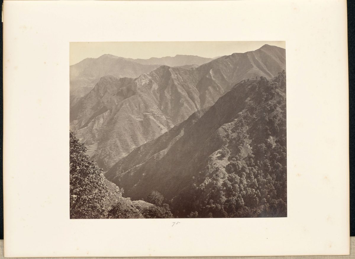 Samuel Borne’s landscape photographs, for instance, are more than sweeping views of mountains, valleys and rivers in northern India and the Himalayas. These images were circulated in British India and England not only as souvenirs, but equally as important visual indexes of a geography still being ‘explored’. They drew on the historical genre called the picturesque – an idealised representation of nature and landscape through a formulaic framing of the terrain, with its vegetation and water bodies, and a deliberate use of light and shadow (Auerbach, 2004, pg 48; Chaudhary, 2012, pg 112).
