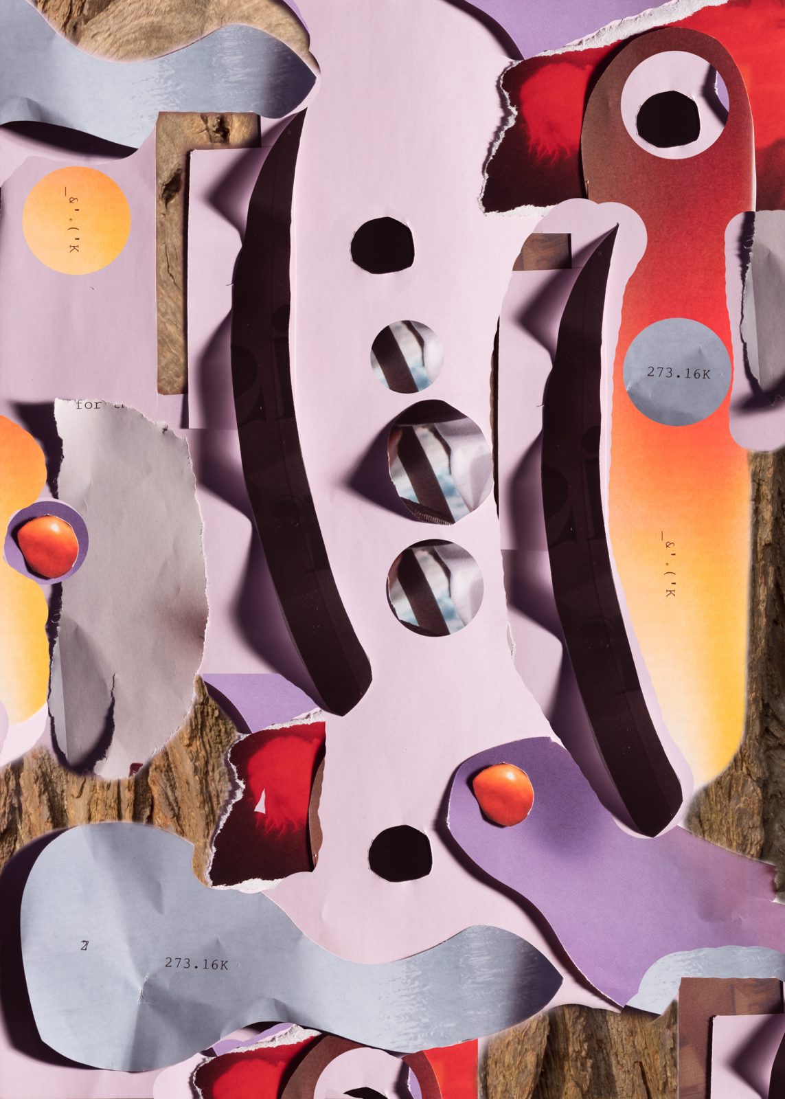 Through this playful investigation, the artist attempts to de-materialise the surrounding world through everyday consumer images but significantly forms a visceral material that becomes a vessel of re-appropriated experiences, memories, and photographs.