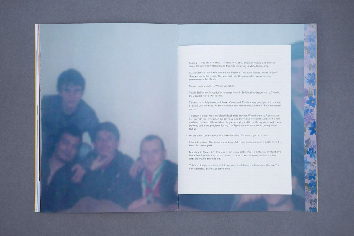 AM: The work has been shown in a number of different ways but I think the book is the best format for the project, bringing together photographs, writing, drawing, conversation transcripts and Facebook photographs. The book aims to reject the satisfying, coherent narratives so often demanded of refugees and to disrupt the dominant representations of migrants and refugees as either victims or criminals. I want to make space to address pressing political questions in a way that is neither didactic nor ambivalent. I also hope to question the role played by photographers and photography in an increasingly interconnected yet bordered world.