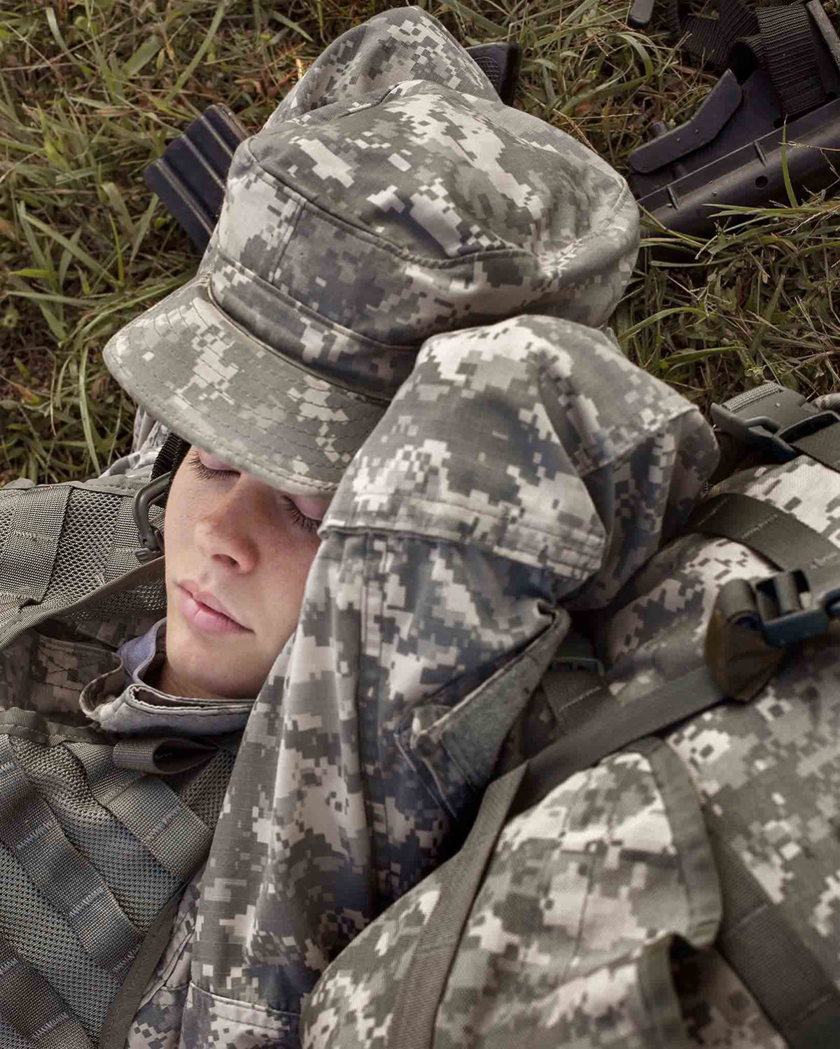 My photographs portray a group of college students seeking to explore and define their emerging identities. These young people have chosen an unusual path: they are all enrolled in the Reserve Officers’ Training Corps (ROTC). When joining, they are taught a set of values and expectations that adhere to a group philosophy. As they struggle to define their own identities, they are also presented with a well-established role to play. Like actors who perform according to a script and can transform their personalities on stage, these cadets are learning a military script that will not only teach them how to perform in the field but require them to adopt a new persona as their own.