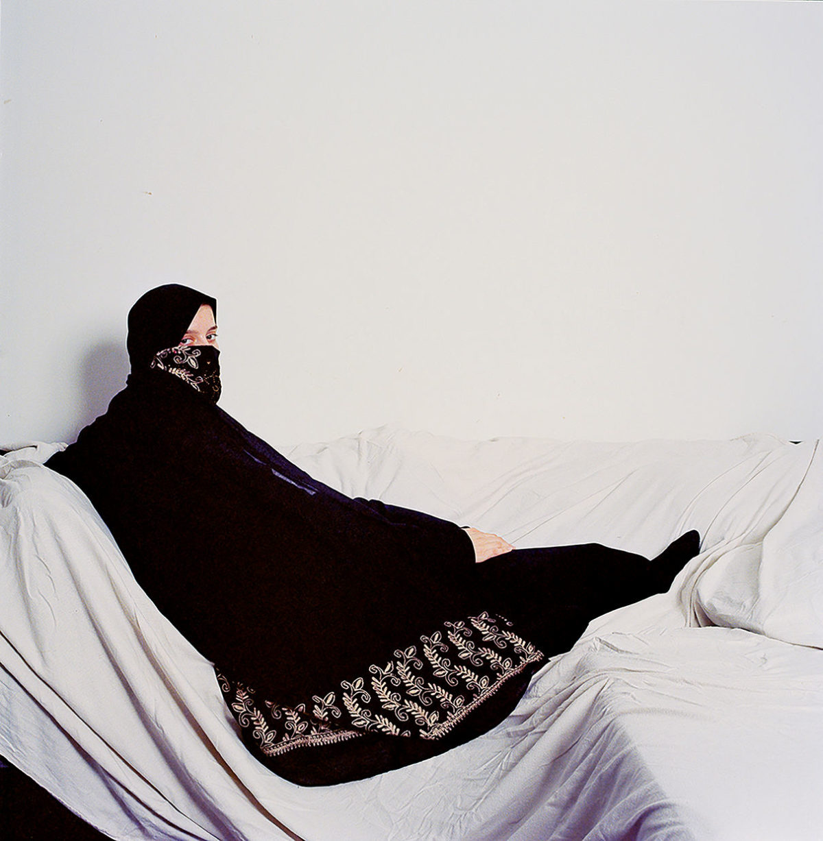 Bateman converted to Islam in 2017, and so her investigations of the experiences of Muslim women are autobiographically informed. She is determined to tell authentic stories: ‘Due to the lack of authentic voices being heard, negative stigmas and stereotyping are perpetuated in the media … Western society continuously feeds the stereotype of oppression. This is typically followed by acts of banning: the niqab, burkinis – and even going to the lengths of banning the hijab in professional places in some countries.’ Bateman contradicts these perceptions, taking inspiration from how women have been represented – and objectified – in famous historical paintings.