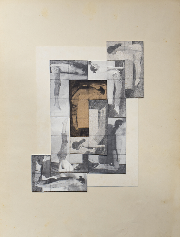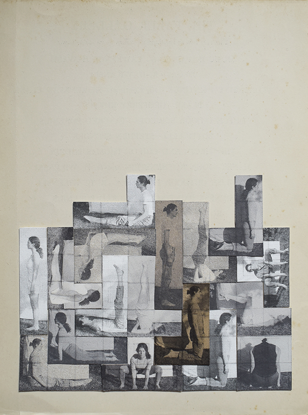 To convert this metaphor into a project, we matched Yoga postures to fit the Tetriminos (the four-square configurations of the game). Hand-drawn shapes were overlayed onto the images, printed, cut out and positioned upon papers from our recycling. The process was an opportunity to depict balance, completion, and harmony of action by adjusting shapes. Frequently we struggled for equilibrium: these compositions revealed the weight-relations when one of us was more affected, emotionally or mentally, in the situation.