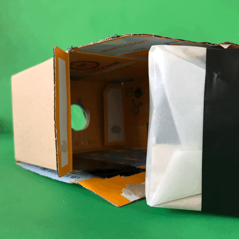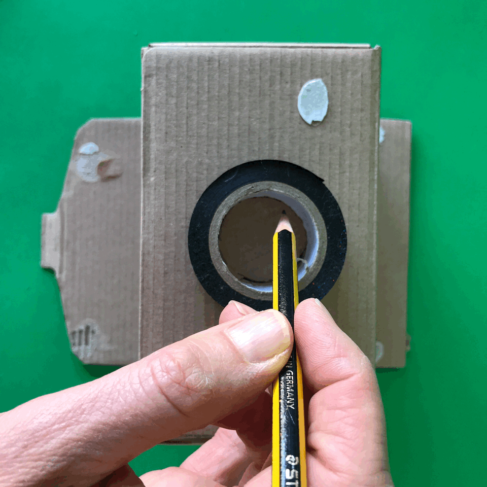 Push the end covered in tracing paper into the other box, with the lens facing away.