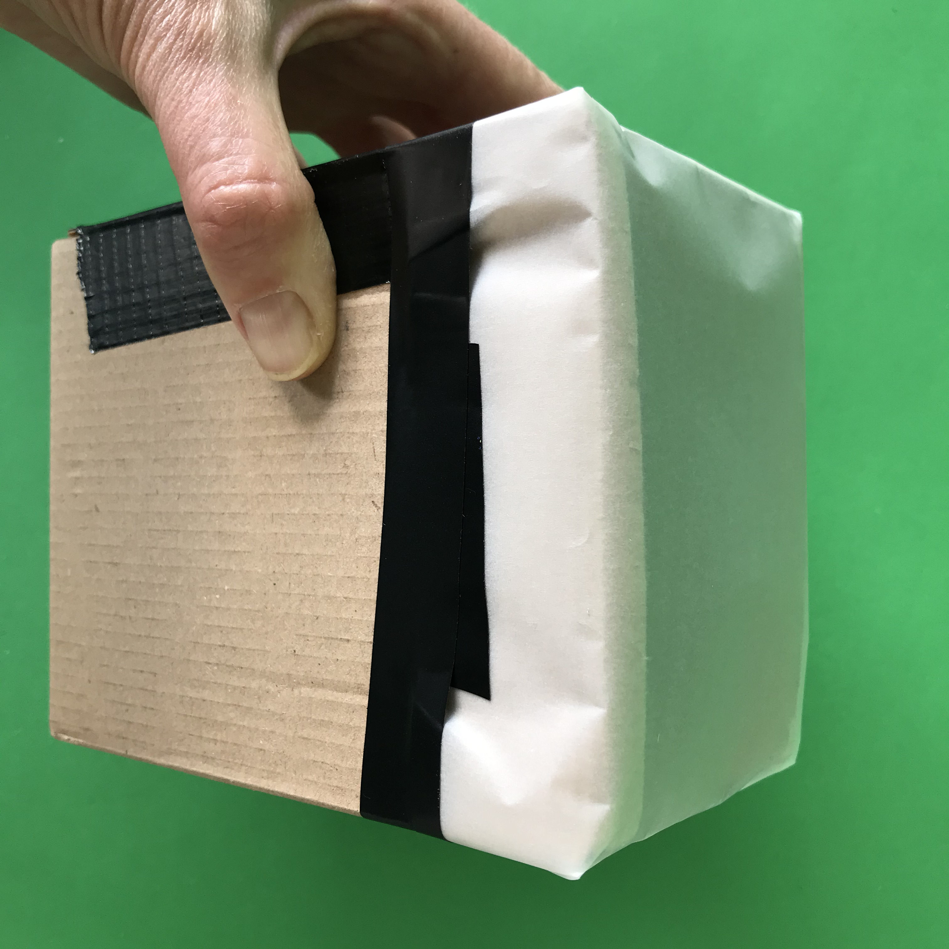 Cut the tracing paper to a size that will cover one end of the smaller box and secure it in place with gaffa tape.