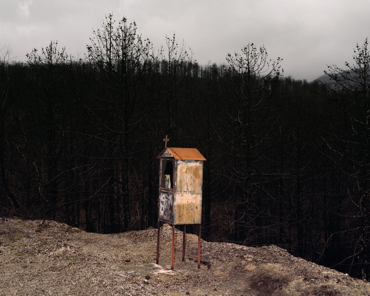“And thus, in me one sees the law of counter-penalty,” writes Massimiliano Cortesellli in the introduction to Contrapasso. The phrase comes from The Divine Comedy by Dante Alighieri, which starts with the author taking a journey through hell with the Roman poet Virgil, meeting the deceased. These people are being punished according to their sins, either in a way that resembles this sin or contrasts with it, in a process known as ‘contrapasso’. For Corteselli, climate change is meting out a similar punishment in the Mediterranean, transforming an area once known for its fertility into a desert. Many of the wildfires in this region are actually manmade disasters, he adds, set as vengeance, or to access government funding, or even to ensure work for firefighters; it’s often hard to know, because it’s in the nature of such fires that their causes are obscure. For Corteselli, though, tracing cause and effect has become essential if humans are to take responsibility for the Anthropocene.