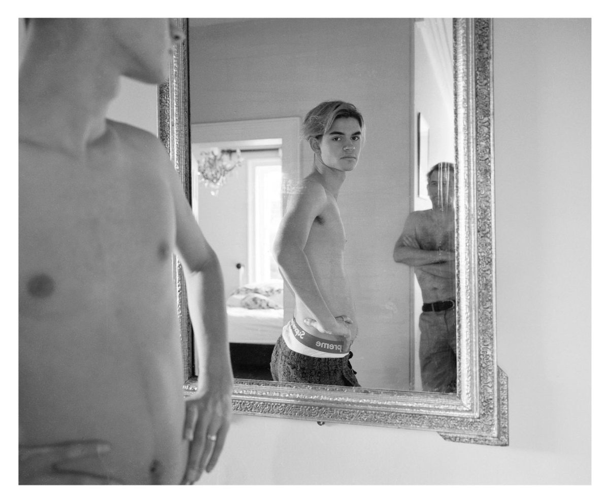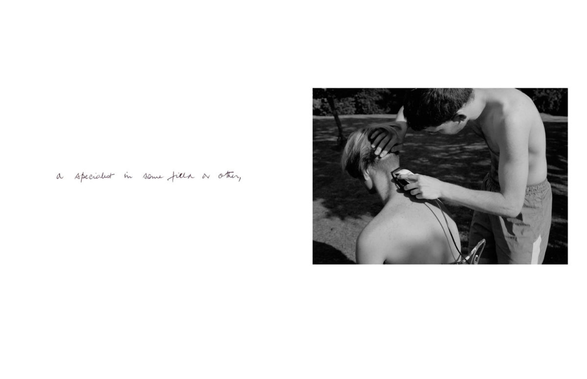 Matt Hind’s practice is committed to uncovering the myths of patriarchy. In All That Remains, he draws on imagined childhood memories and personal experiences to explore the influence of patriarchal culture on his identity as a parent and image maker, and to reflect on the complexities of masculinity. Hind has a background in fashion photography, and is particularly interested in how men are depicted in visual culture and how traditional masculinities are simultaneously preserved and challenged by the photographic medium. In this body of work, the artist collaborates with his father Geoffrey and his son Sam and includes his grandfather’s handwriting (taken from a letter written to the photographer when he was 11) to investigate how forms of propaganda associated with certain ideals of family life play a part in maintaining the frameworks that continue to shape and privilege maleness in society.