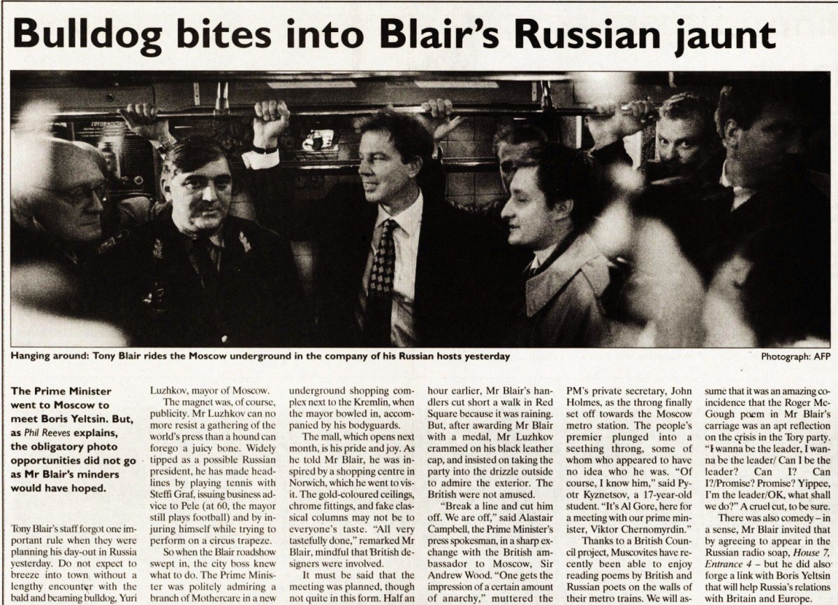 A few months later on a trip to Moscow the Prime Minister’s itinerary included a ride on the metro; roped off at one end of the carriage were reporters, photographers and television crews.