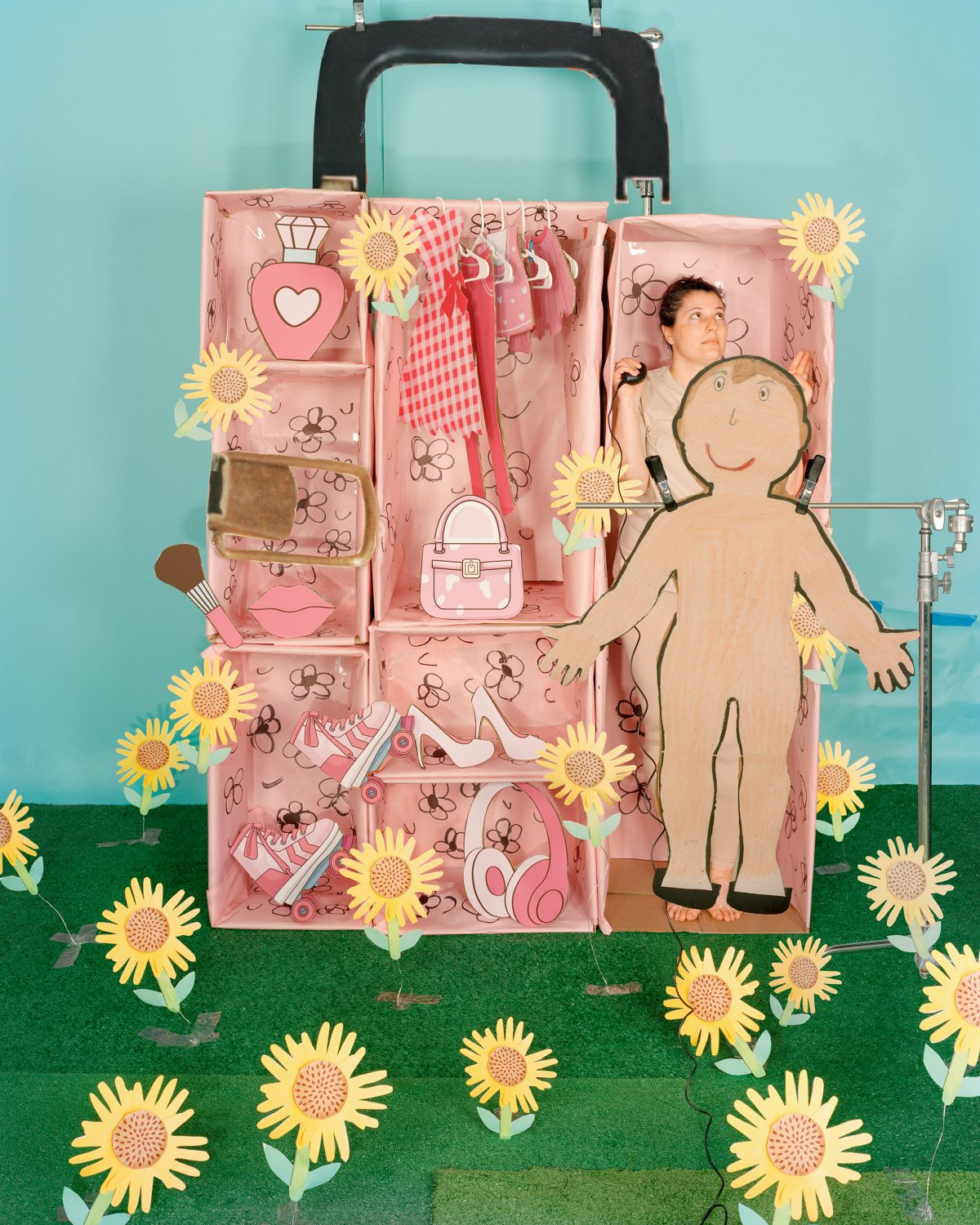 When Quincey Spagnoletti looked back at her childhood, she was confronted with conflicting notions about how a woman is supposed to act and ‘perform’ for society. Her upbringing was dominated by traditional norms but as an adult she has found other role models; her series Home Studio sets up constructed images to disrupt and unlearn what she was taught. Spagnoletti uses life-sized objects and props, and often plays with the theme of control, searching for the ideal model, an exact replica of a leather chair or a childhood dollhouse. The camera is a tool to elucidate her own emotions and personal relationships and her studio practice is a back-and-forth between pathos and logic, she says, in an ongoing search for who she is as a woman, internally and externally.