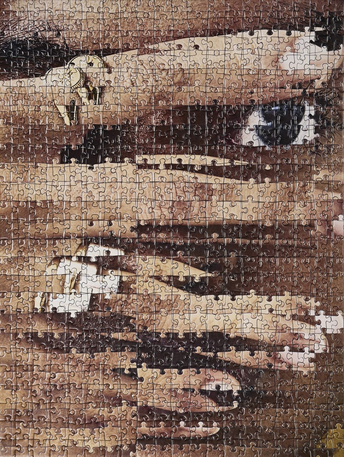 This way of working isn’t new territory for Haser, as she utilized puzzles in her 2018 series Within 15 Minutes, in which she explored identical twins and their genetics. When asked about this medium, Haser says that she was fascinated by it, as it allowed her a better way to get across her concept. She says: “I seem to always be drawn to mediums that take time, things like paper folding and manipulating, tapestry and embroidery too. I like the laborious and meditative qualities.” It’s the physicality of the puzzle that attracts her, and the almost monotonous, repetitive act of putting pieces together one by one. The medium allows Haser to interact with her work on another level, one that isn’t traditionally offered by photographic prints.