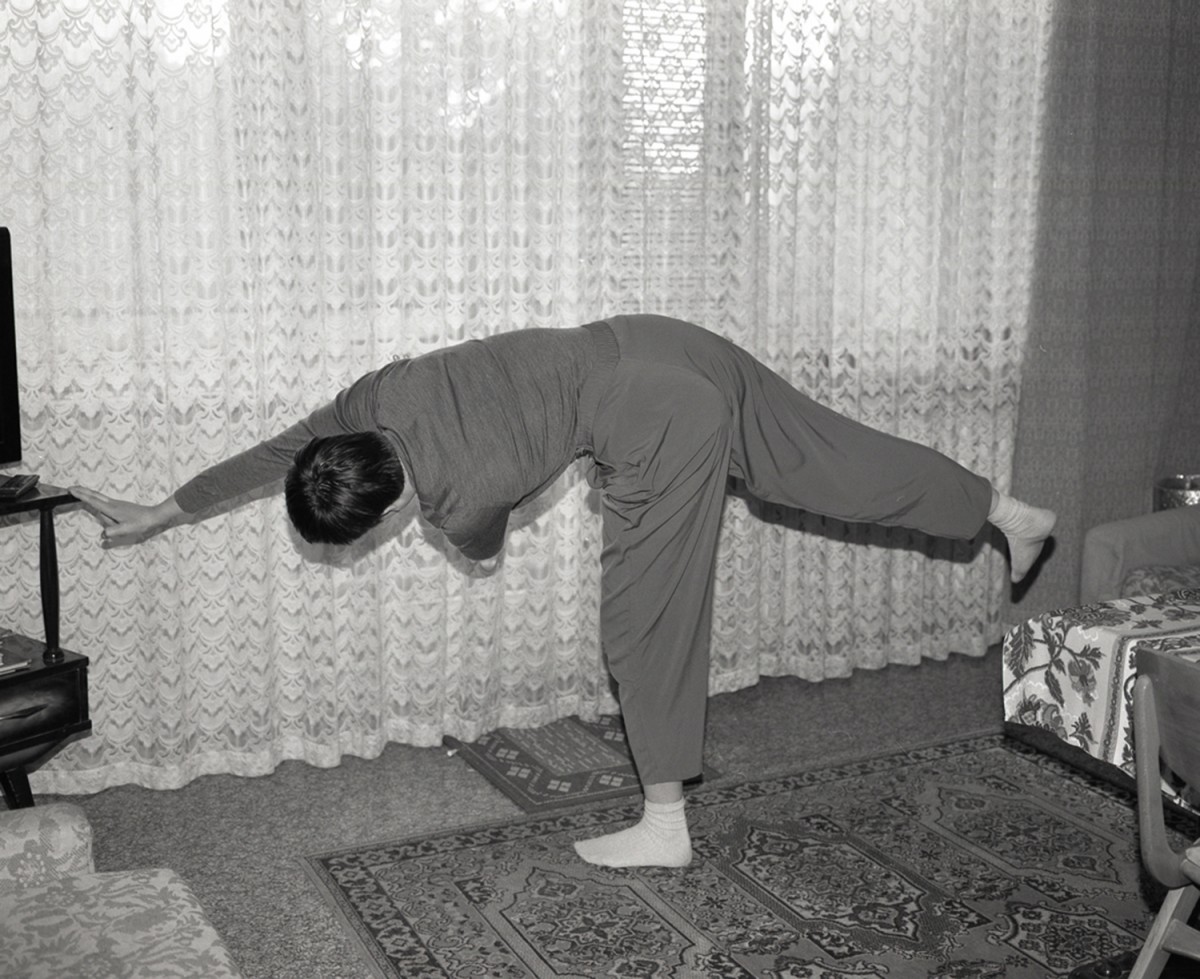 Piotrowska’s series of portraits presents girls recreating poses from self-defence manuals. The photographs present the body as a sculptural, self-contained form that is physically entangled with something invisible to the viewer. The subject remains anonymous or looks away from the camera but possesses a sense of control and courage. Set within a domestic environment, the body stands in opposition to its context and the passive gender stereotype associated with the subject.