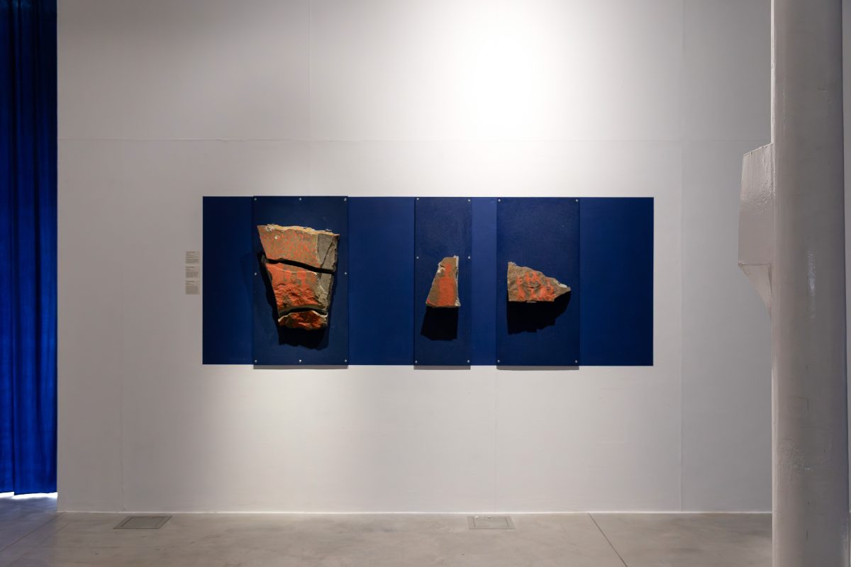 It is the blue of distance and of infinity, of the Iberian Peninsula, the bottom of the ocean, the Black Atlantic, the unknown, and of absence. This blue fills in spaces where nothing is held, as water fills in gaps, always in a rush to bathe a void. Histories, too, hold this same sense of urgency: a readiness to make whole from a sparsity of matter, an eagerness to kiss the shore and feel the truth of land.