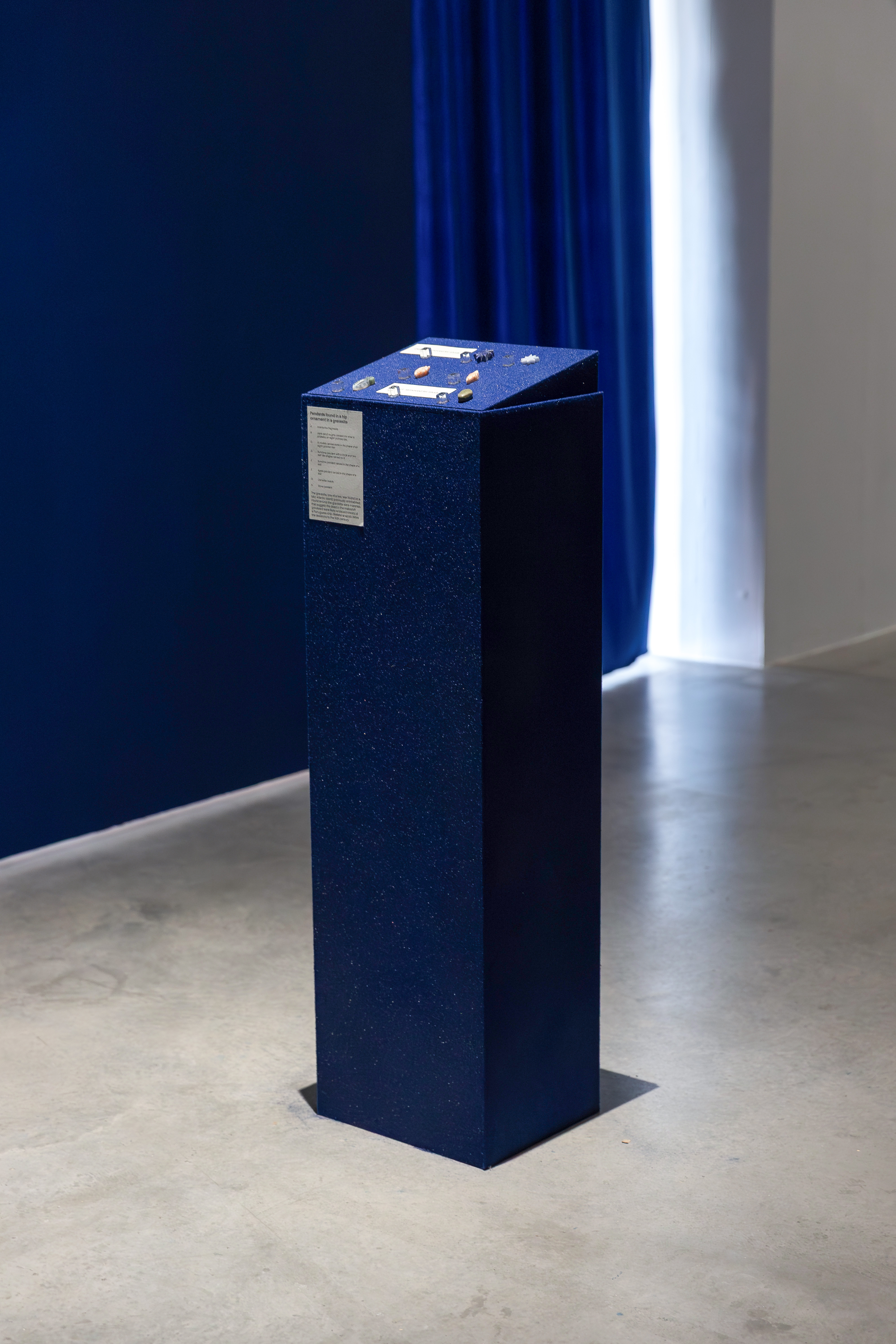 It is the blue of distance and of infinity, of the Iberian Peninsula, the bottom of the ocean, the Black Atlantic, the unknown, and of absence. This blue fills in spaces where nothing is held, as water fills in gaps, always in a rush to bathe a void. Histories, too, hold this same sense of urgency: a readiness to make whole from a sparsity of matter, an eagerness to kiss the shore and feel the truth of land.