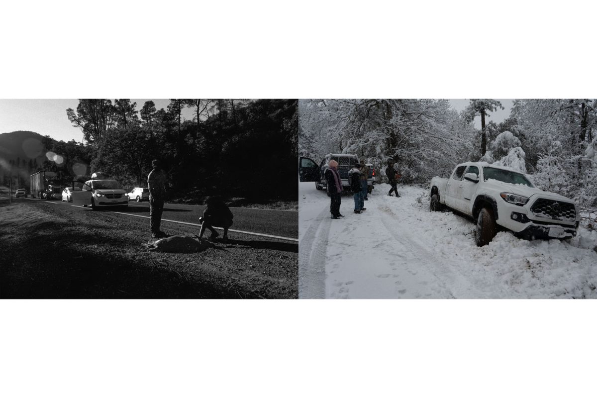 In 2019, RoN was working in his hometown of Mexico City when a friend told him about cannabis-harvesting work in northern California, which offered the chance to make a lot of money in a short amount of time, as well as a way to travel. It seemed an unmissable opportunity to RoN, who set off shortly afterwards. However, upon arrival he faced hostility from the locals for being a foreigner and a ‘trimmigrant’, a term used to describe immigrants working seasonally in cannabis harvesting. After a few months of intense work, RoN realised he was no longer the same person and remembered a phrase he’d once heard: ‘No one can remain untouched by their surroundings.’ He turned to photography to retain his sense of self, recording his work that year and when he returned to California for two subsequent harvesting seasons. These images reappear as memories, RoN says, confirming his presence in both the past and present.