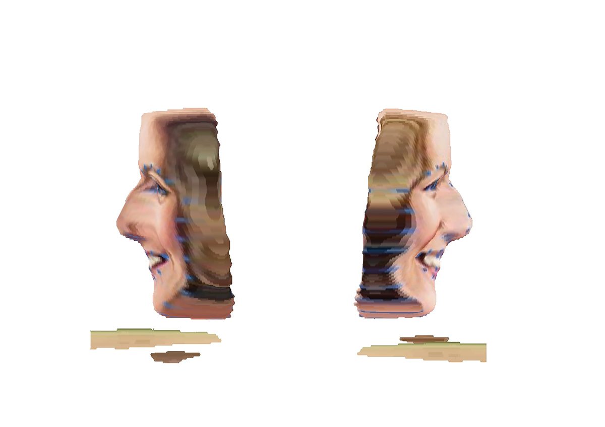 Although an answer to specific events, the project goes beyond the context it originates from, as deceiving facial recognition technologies is not its only purpose. Sara Hodges is an average product, and the product of machine learning. Due to the paradox she stems from – that in machine learning a finite database can generate an infinite output – there can potentially be infinite versions of this persona, all different yet the same. While for humans an average result is typically a single parameter, averageness for AI is a fragmented concept, made of infinite possible averages. The only way Sara Hodges can be a universal average is by transcending all the possible visual-text combinations that form her digital footprint, leaving behind all her multiples, as she is ultimately an idea. As such, she embodies the prospect of a society that only tolerates standardised thinking, beyond which any divergence from government ideals risks being flagged as a threat.