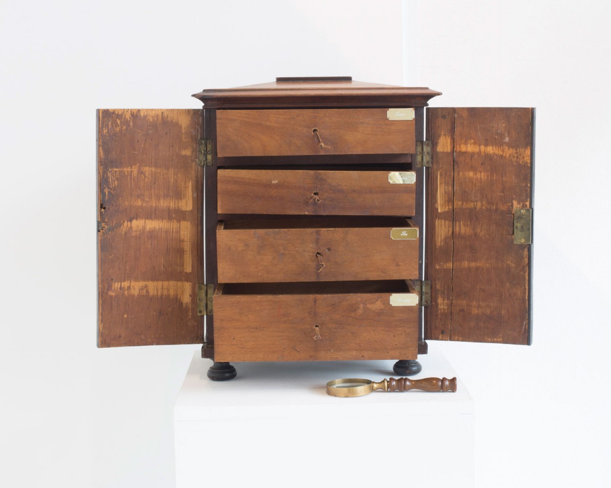 I’m interested in the haunted and haunting aspects of communications technologies, principally photography and writing: doublings, uncanny copies and likenesses, and the estrangement of things lost and found in transmission. Using various photographic means, my work explores different kinds of interior space: dark rooms and séance rooms, haunted houses and hotels, the everyday living room watched over by family photographs, and the camera obscura itself.
