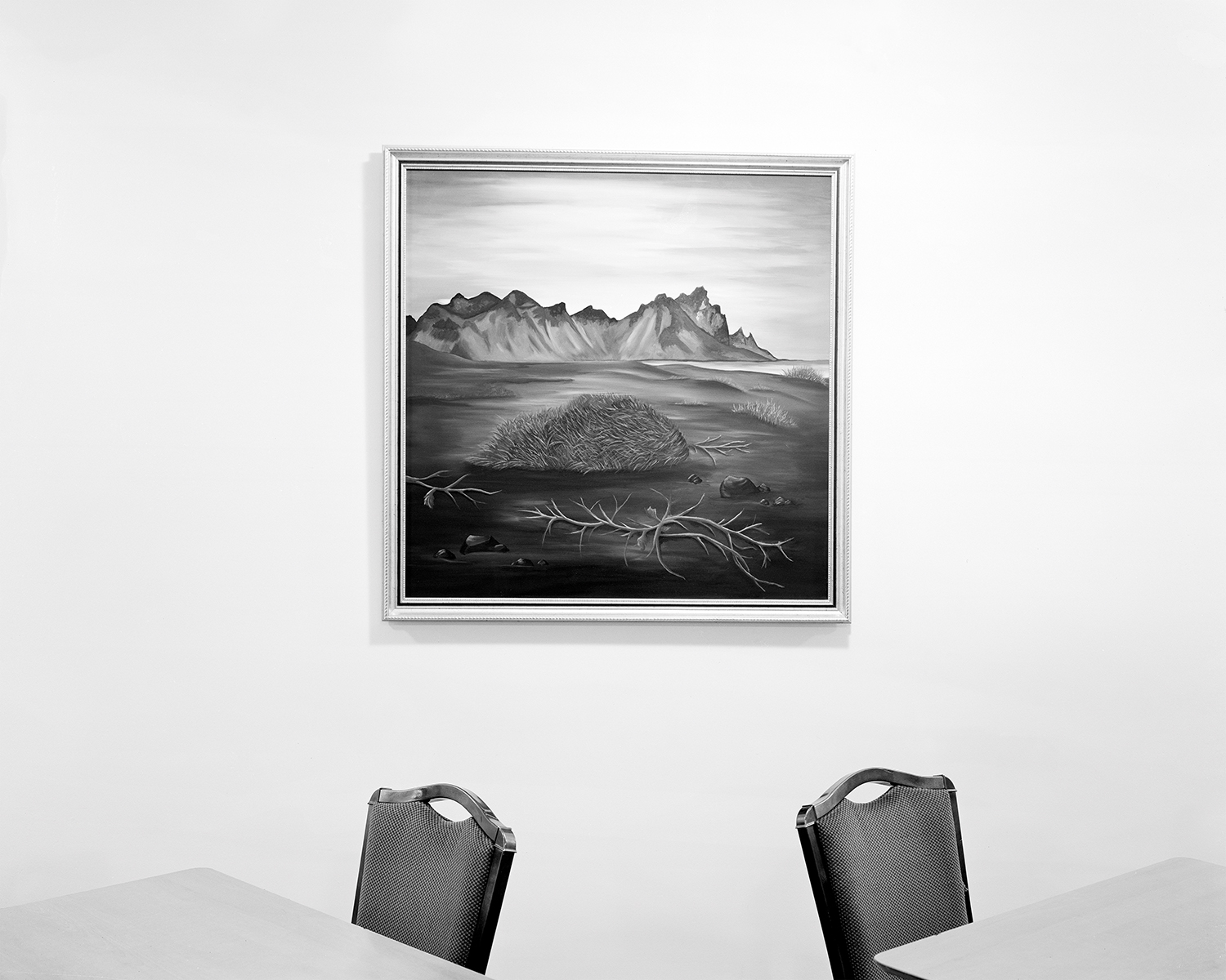 The physical installation of Heimr in my graduate show at Brighton University included five framed C-type prints in a scattered formation in addition to a larger C-type print that was neither framed nor mounted and floated away from the wall using magnets. The simplicity of the presentation was intended to continue the reductive style of the photographs themselves, where my subject matter was recorded in the way documents in many scientific contexts are formed for their intrinsic value as data.