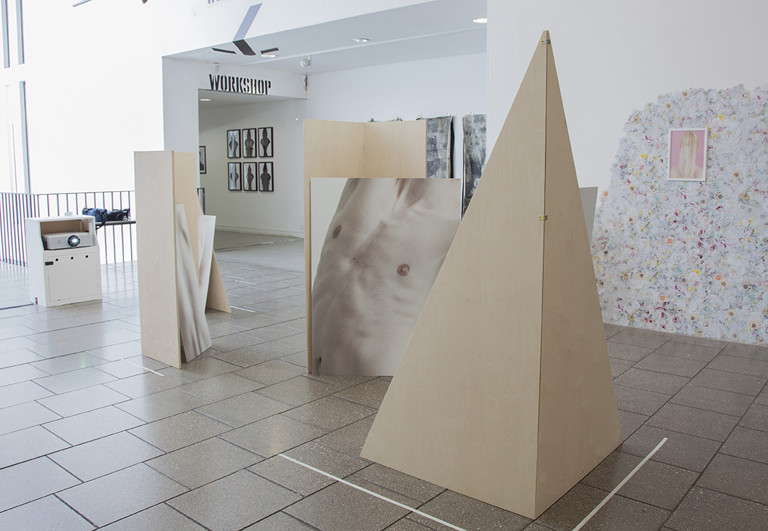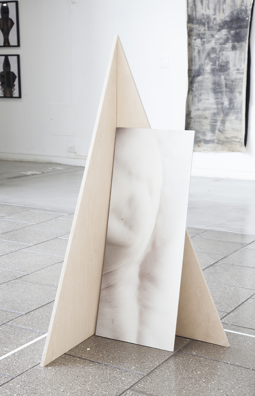 Sirin Winge's series 'Iscoceles' focuses on the male body and the ways in which two-dimensional images can be considered sculptural.