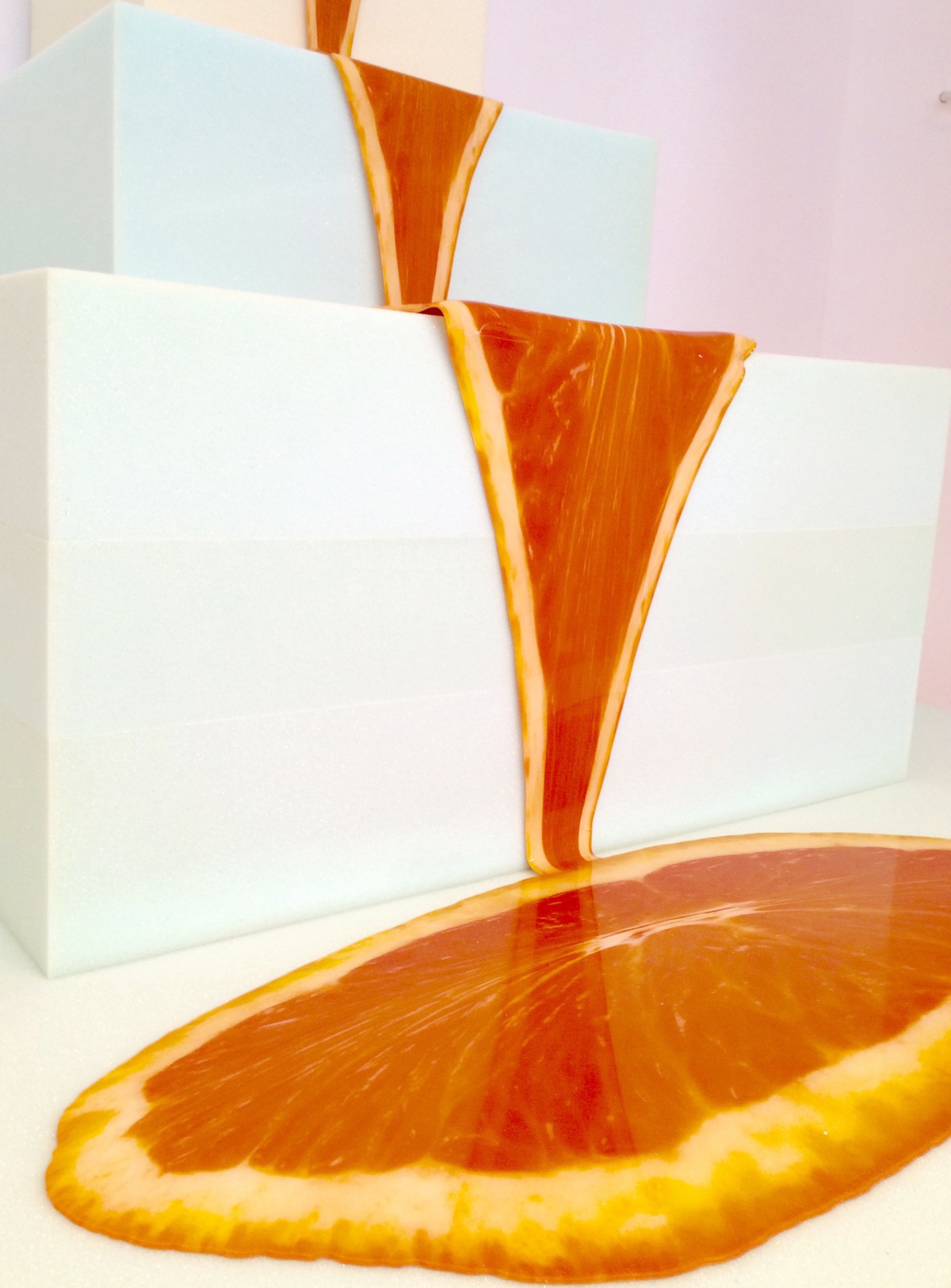PW: Your work involves photo sculptures printed onto acrylic which you’re physically molding during installation. Can you talk to us about the physicality of your work and how you came to work like that?