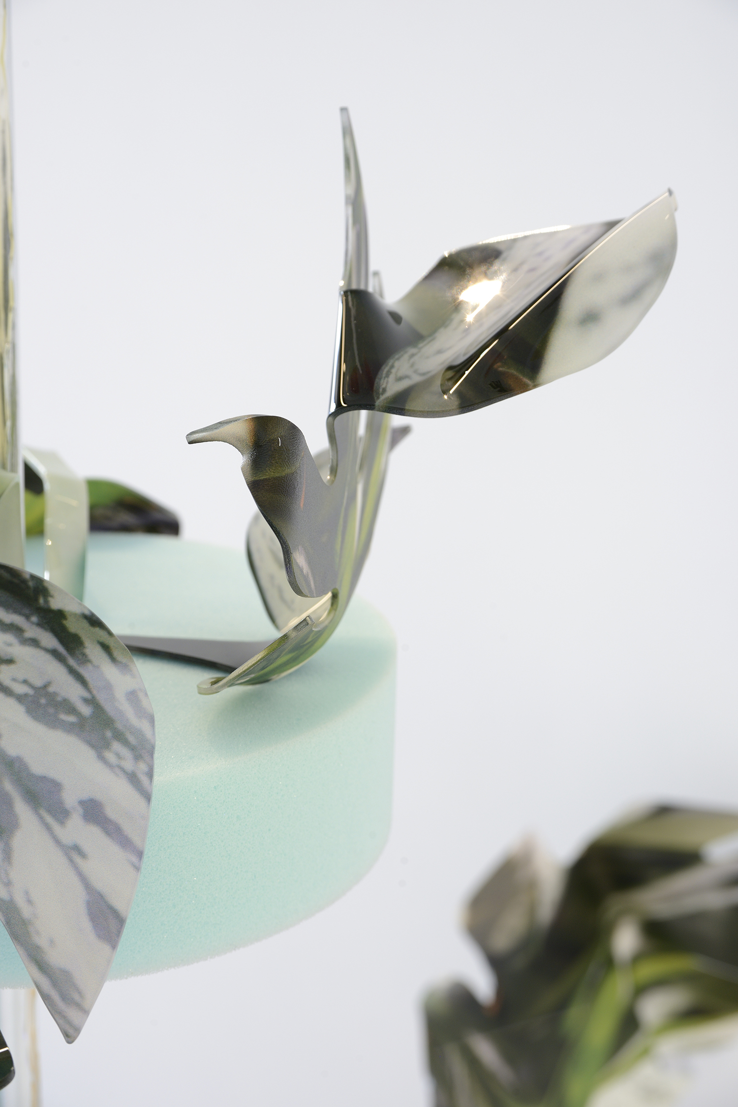 I am very intrigued by the spatial aspects of the digital world, and the way that we might negate the seemingly three-dimensional space of a two-dimensional image. I wanted to find ways of extracting these worlds and bringing them into the physical space. Printing these images onto materials that have a malleability, in a different way to photographic paper, allows me to re-stage these spaces. I find that printing on acrylic gives the image a new sense of freedom somehow, where it can exist in the physical world, as the 3D object it was trying to mimic.