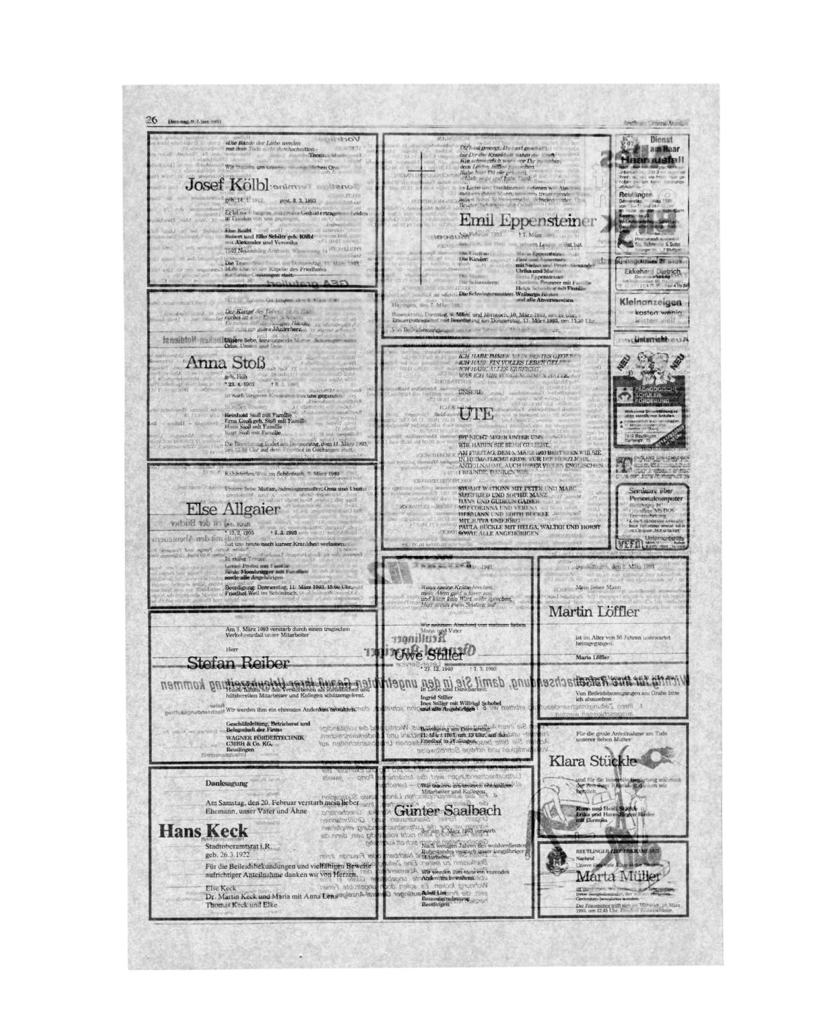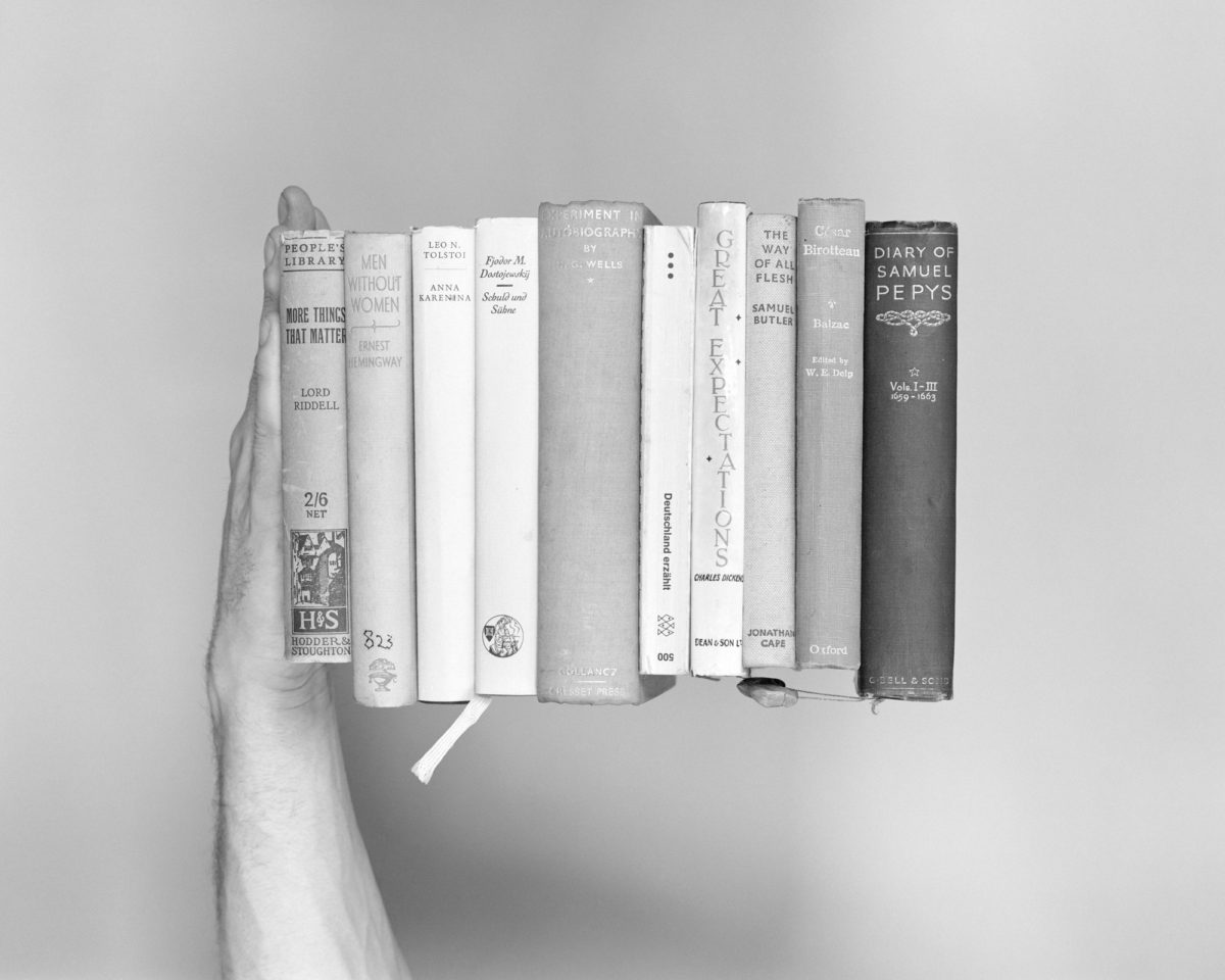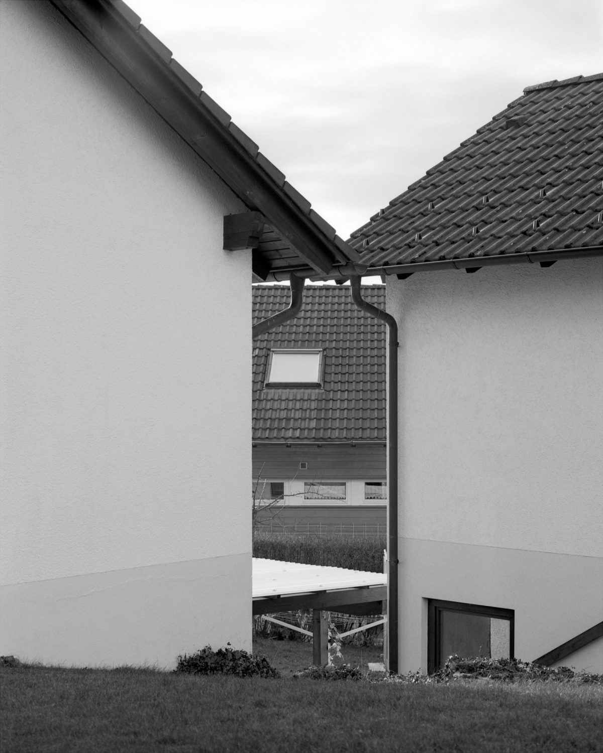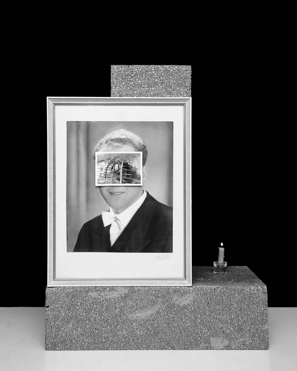 The beech tree, in German Buche (‘Buch’ translates directly as ‘book’), is common to the region, and appears several times in the work in various forms. Chopped wood for me speaks of a specific Germanness. Some associations: the chopping of wood, the ordering and stacking of wood, the cutting and splitting of time, of growth, life and death, rebirth. In the exhibition, one of the logs I chopped with my grandfather is presented three times, as a concrete cast. A desaturated grey object, an indexical imprint of the original that presents the object but at the same time is an abstraction of the original – a gesture like that of the black-and-white photographs.