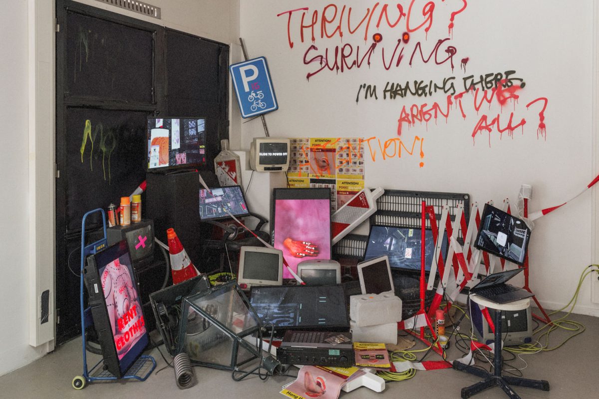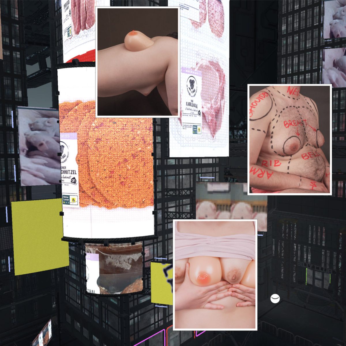 Born in the year of the pig, Vera Yijun Zhou was mocked in her youth by other children, an experience which made her feel she embodied the failed image of a ‘pig’. In many cultures, pigs are seen as dirty, and pork products are not consumed. Calling someone a ‘pig’ is usually considered derogatory, and is even classed as a form of bullying by Facebook, amounting to a violation of its user code. Questioning the cultural norms that declare pigs physically and intellectually inferior, Zhou used the game engine Unity 3D to construct a dehumanised world out of images of pigs and pork. Across multiple screens and billboards within this alternative reality, Zhou questions how pigs might look at screens in a pigs’ world, and whether pigs would be offended by pork images on social media. In doing so, she also considers how representation via images generates culturally specific notions of failure, and the huge database of images we collectively create and consume every day.