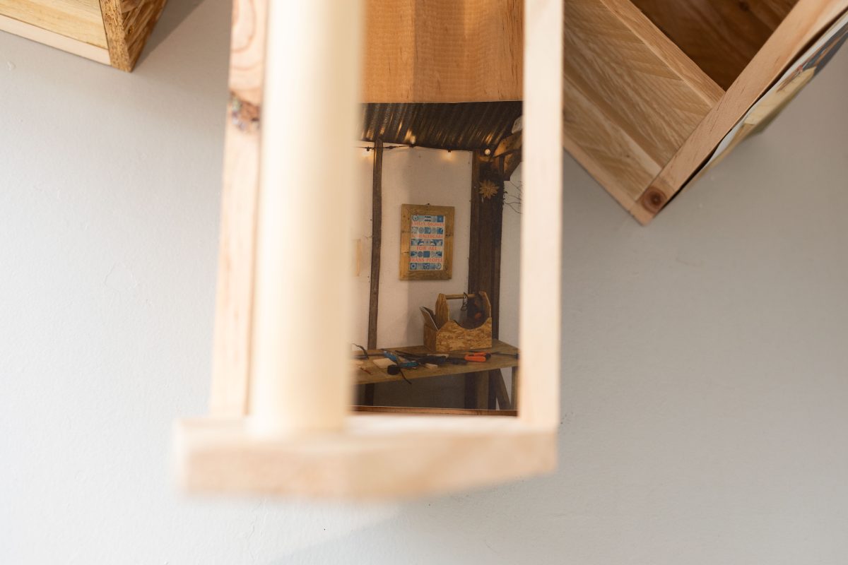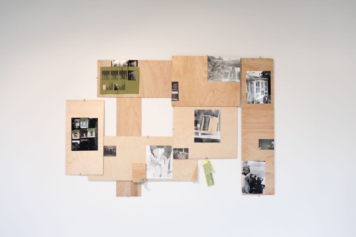 Responding to In Our Hands’ distinctive visual language, self-built structures, improvised wooden frames and patchwork constructions, the group developed a layered assembly of wood offcuts reflecting on windows, thresholds, and the use of leftover materials.