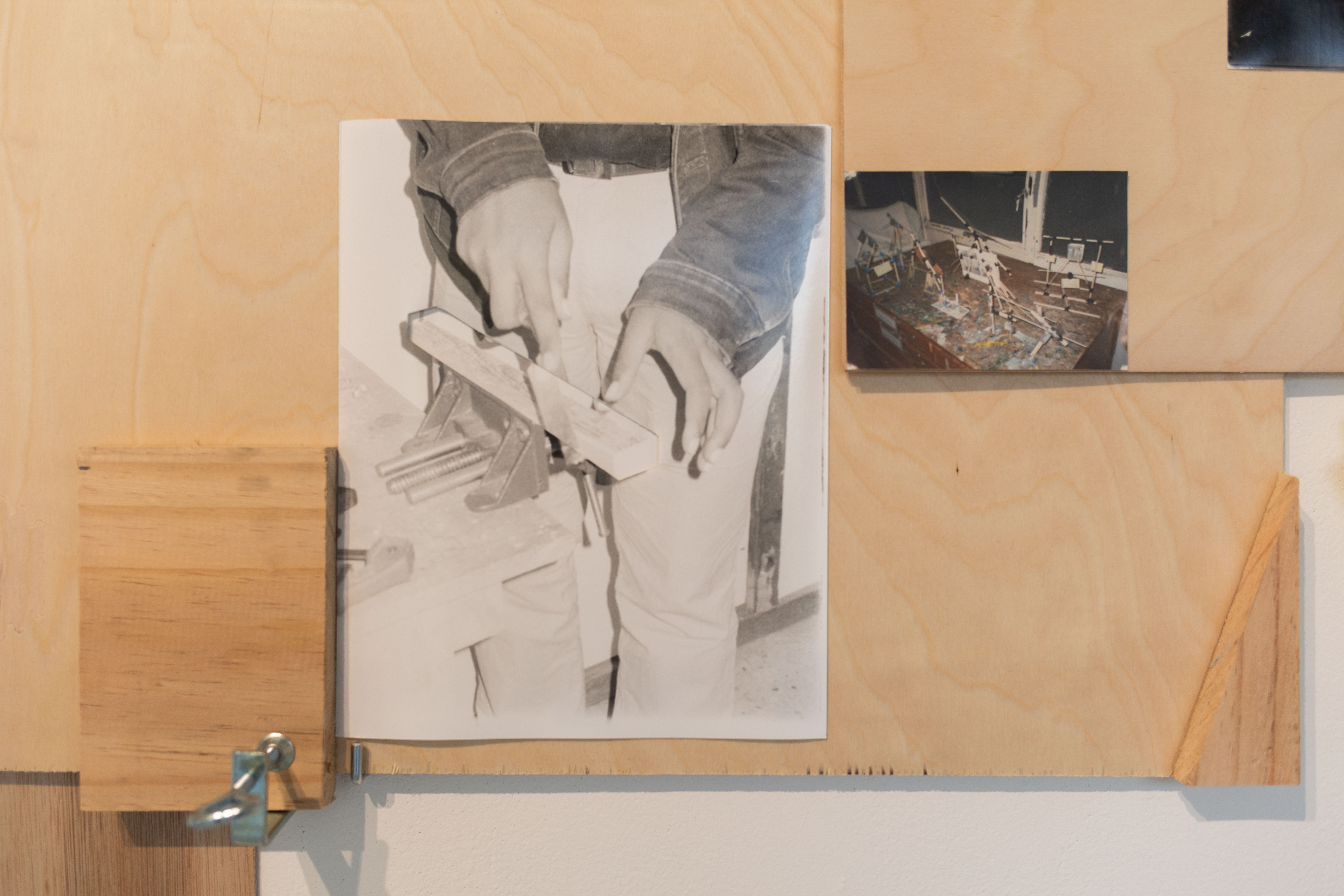 The artworks trace moments from the group’s shared process. From staged self-portraits playing with ideas of shelter and gathering, to wooden tote boxes developed with the queer-led carpentry organisation In Our Hands.