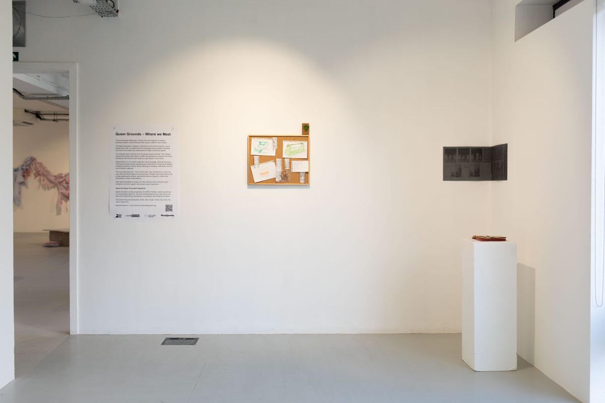Each element reflects an inquiry into how building, both as structure and metaphor can hold, support, and connect queer experience.